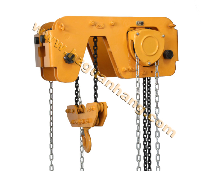 低凈空手拉葫蘆設計合理,起吊平穩(wěn),運行靈活,適用不同寬度軌道的無電凈空低場所。